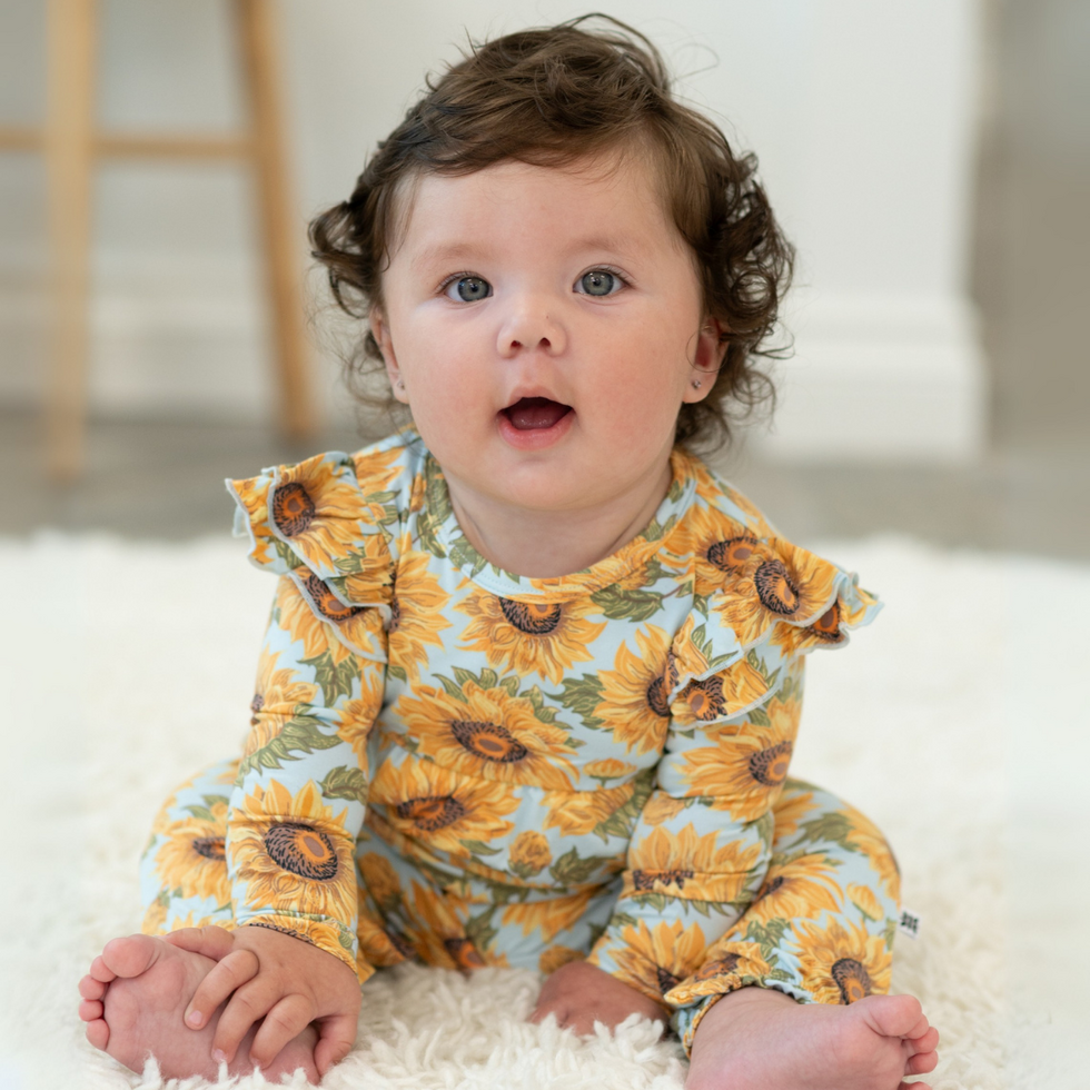 L/S Flutter Sleeve Romper - Sammy's Sunflower L/S Flutter Sleeve Romper, Sammy's Sunflower, FW25 Preorder